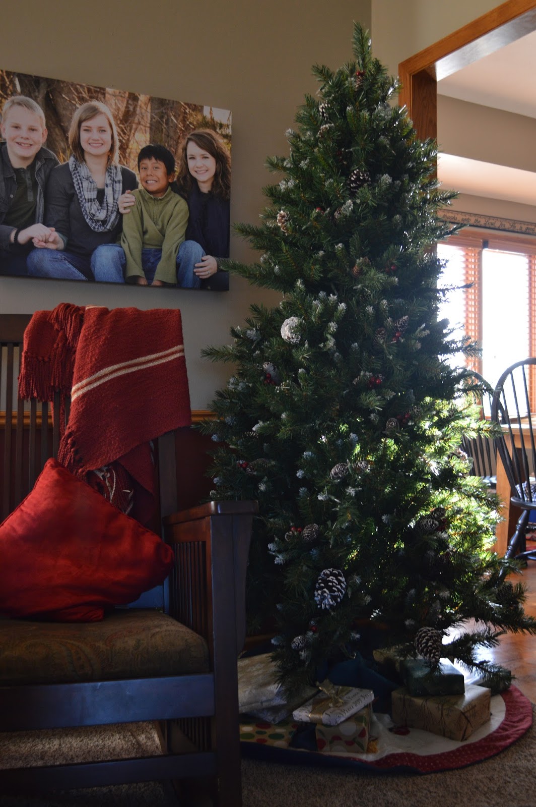 Next up is our family tree. This tree has taken many different paths throughout the years. We had a monstrous artificial tree for the past few years but finally decided it took up way too much space so we passed it on. I just recently found a small tree with pinecones and berries that I adore. For now it remains empty, but when our college girl, Riley, gets home we will decorate it with her! This year I hope to weed through the years of collected family ornaments and downscale, keeping only the ones we really love and adore. I want this tree to speak of the memories we hold close to our hearts!